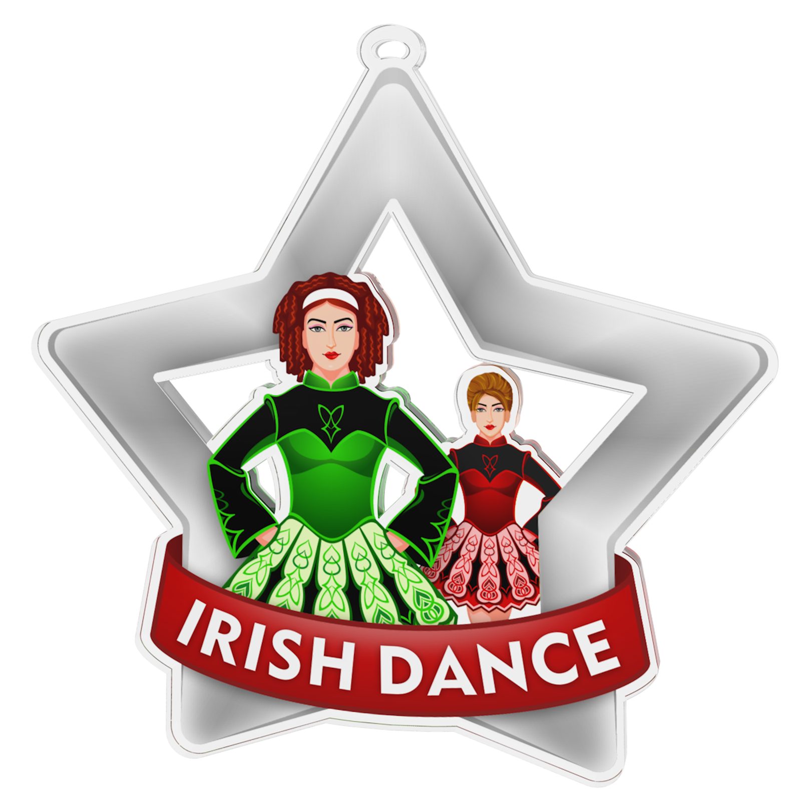 The Irish Dance Mini Star Silver Medal is part of a brand new exciting dance star range, designed in partnership with Trophy Monster. Based on the popular children's classic medal we have brought it up to date with innovation using contemporary images. We have also created two bigger sizes, the MAXI STAR and SUPER MAXI STAR.
