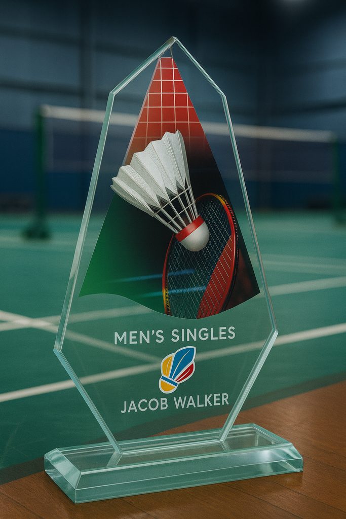 Badminton Trophies Glass Awards Full Color Printed Sport & Athletics Glass Awards