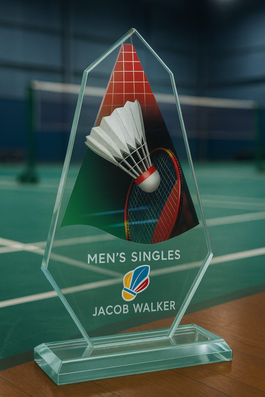 Distinctive badminton-themed design for competitive recognition