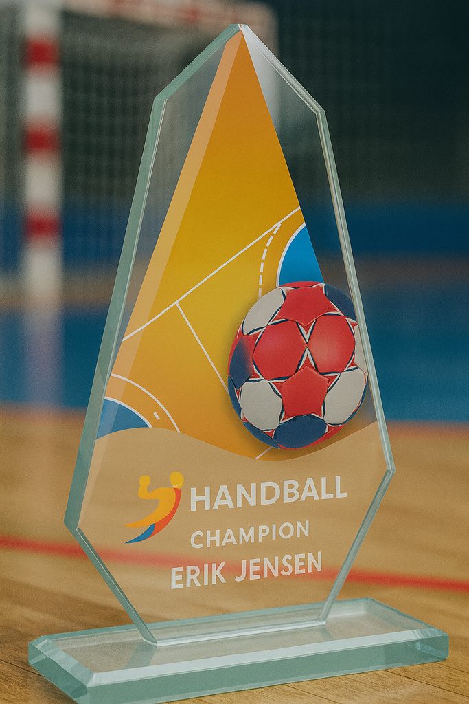 Handball Trophies Glass Awards Full Color Printed Sport & Athletics Glass Awards