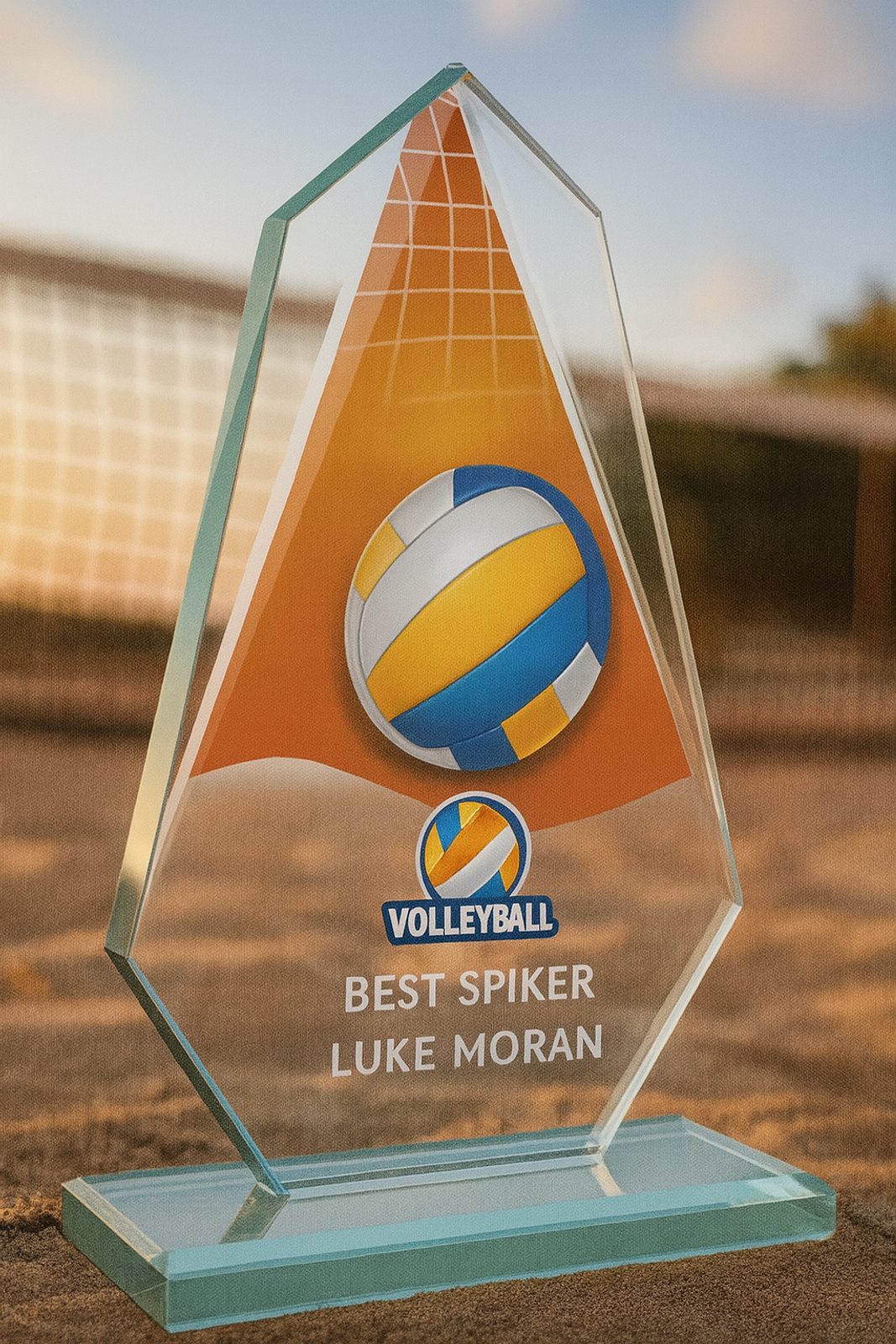Celebrate victory, teamwork, and passion for the game with the Levita Volleyball Glass Award – a modern and elegant design crafted to honor outstanding sporting performance. Made from 3/8" thick high-clarity glass, it offers a substantial, high-quality feel that elevates every presentation. Perfect for clubs, leagues, and tournaments, this stylish award reflects achievement with timeless appeal.