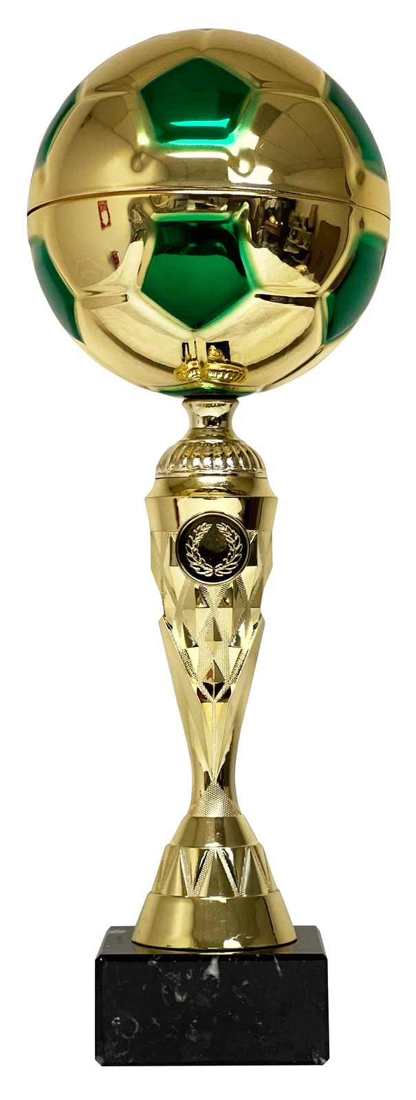 Exclusive to Trophy Monster the Merida Gold and Green Soccer Trophy TL2090 is an affordably priced premium award. Consisting of a quality metal soccer ball which is fixed to a high definition plastic stem. Then mounted onto a heavyweight marable base producing a standout award for your next presentation!