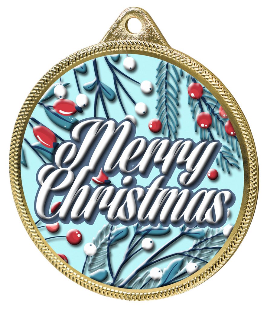 Merry Christmas 3D Texture Print Full Color 2 1/8 Medal - Gold