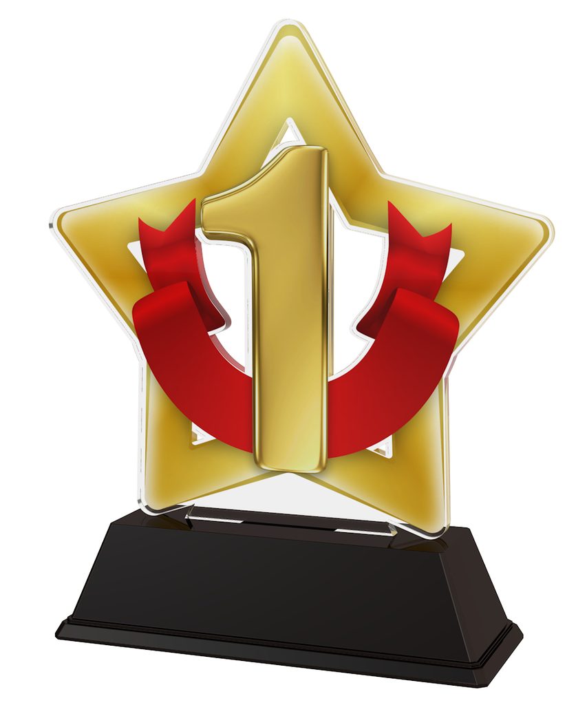 Cut out to shape this trophy comes to life with a high quality full colour print on the reverse side of the 5/32" thick acrylic. This is then mounted onto a black PVC base. In addition, the award also comes with a FREE engraved self adhesive plate with text of your choice.