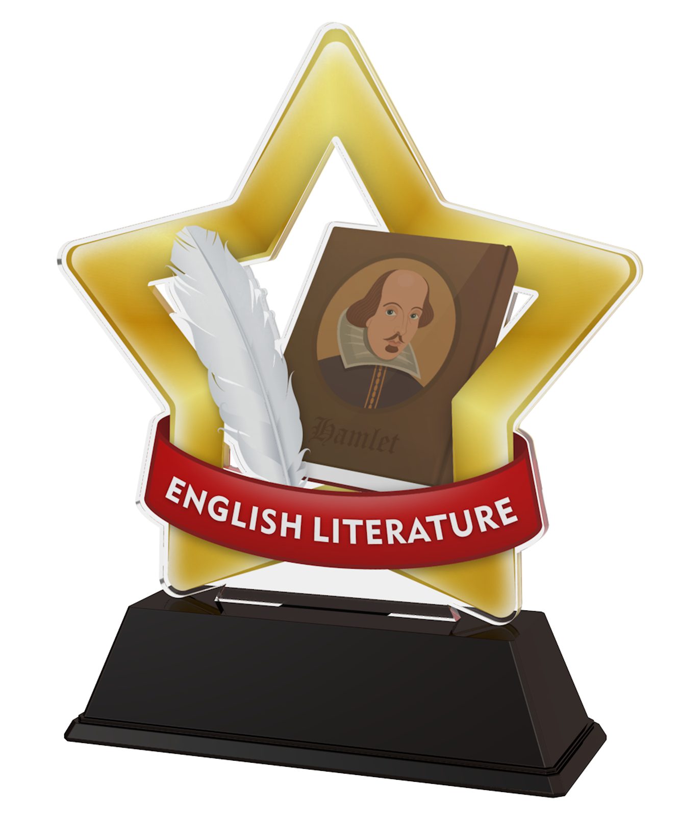 The Mini Star English Literature Trophy is part of a brand new exciting school subject range, designed exclusively by Trophy Monster. Based on the popular children's classic trophy we have brought it up to date with innovation using contemporary images. We have also created bigger sizes, the MAXI STAR and SUPER MAXI STAR. Each size star comes in gold, silver or bronze too.