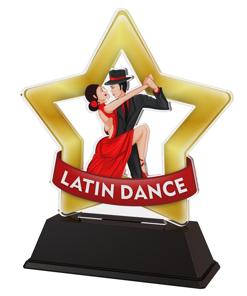 The Mini Star Latin Dance Trophy is part of a brand new exciting star range, designed exclusively by Trophy Monster. Based on the popular children's classic trophy we have brought it up to date with innovation using contemporary images. We have also created bigger sizes, the MAXI STAR and SUPER MAXI STAR. Each size star comes in gold, silver or bronze too.