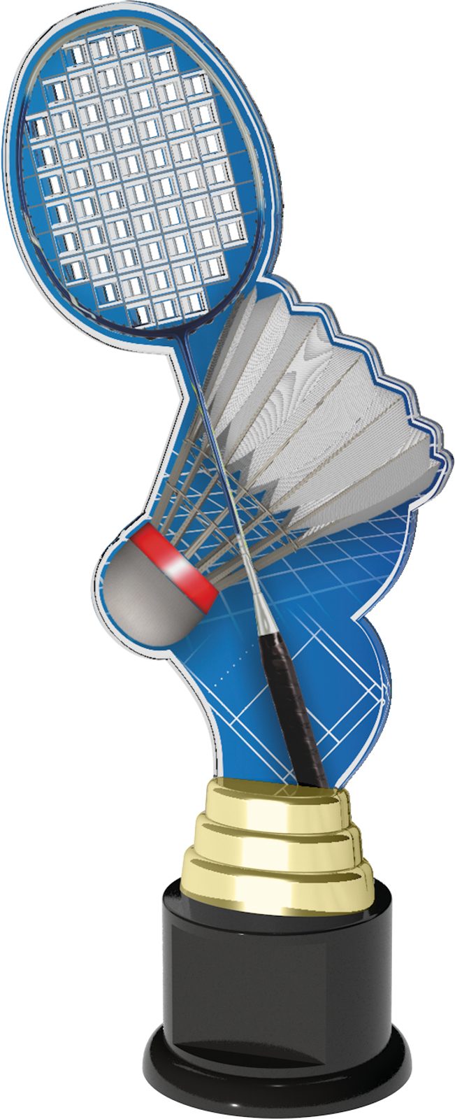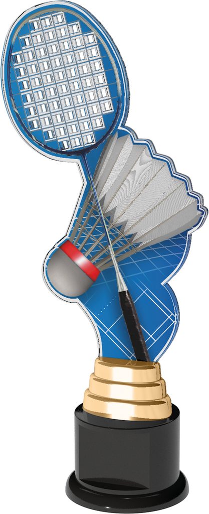 The Monaco Badminton Trophy is a tall modern style award. Cut to shape this trophy features a high quality full color print on the reverse side of the 1/4" thick acrylic mounted on a large round black PVC base. Just above the base sits a riser. Please select which colour riser you like from gold, silver or bronze.