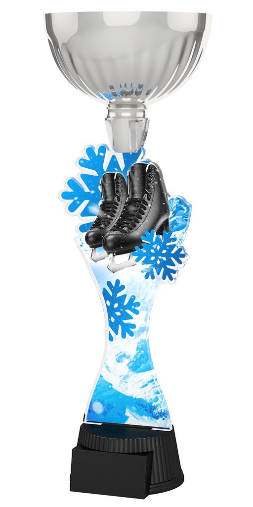 The Montreal Black Ice Skating Silver Cup Trophy will be the centerpiece in any presentation. This trophy features a high quality full color print on the reverse side of 1/4” acrylic, with a silver metal cup, all mounted on a circular and weighted black PVC base.