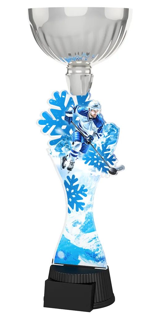 The Montreal Ice Hockey Silver Cup Trophy will be the centerpiece in any presentation. This trophy features a high quality full color print on the reverse side of 1/4” acrylic, with a silver metal cup, all mounted on a circular and weighted black PVC base.