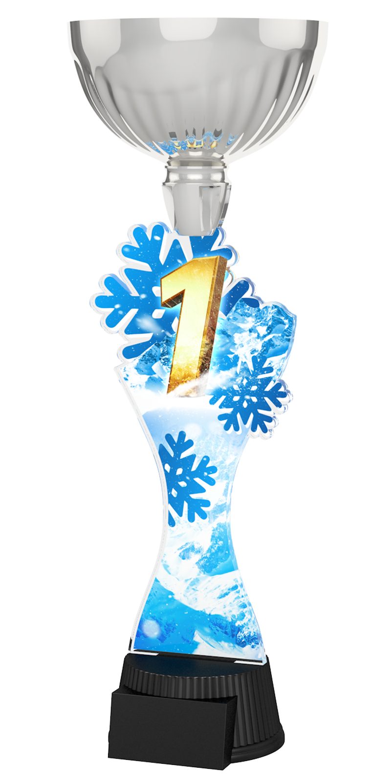 The Montreal Numbers Silver Cup Trophy will be the centerpiece in any presentation. This trophy features a high quality full color print on the reverse side of 1/4” acrylic, with a silver metal cup, all mounted on a circular and weighted black PVC base.