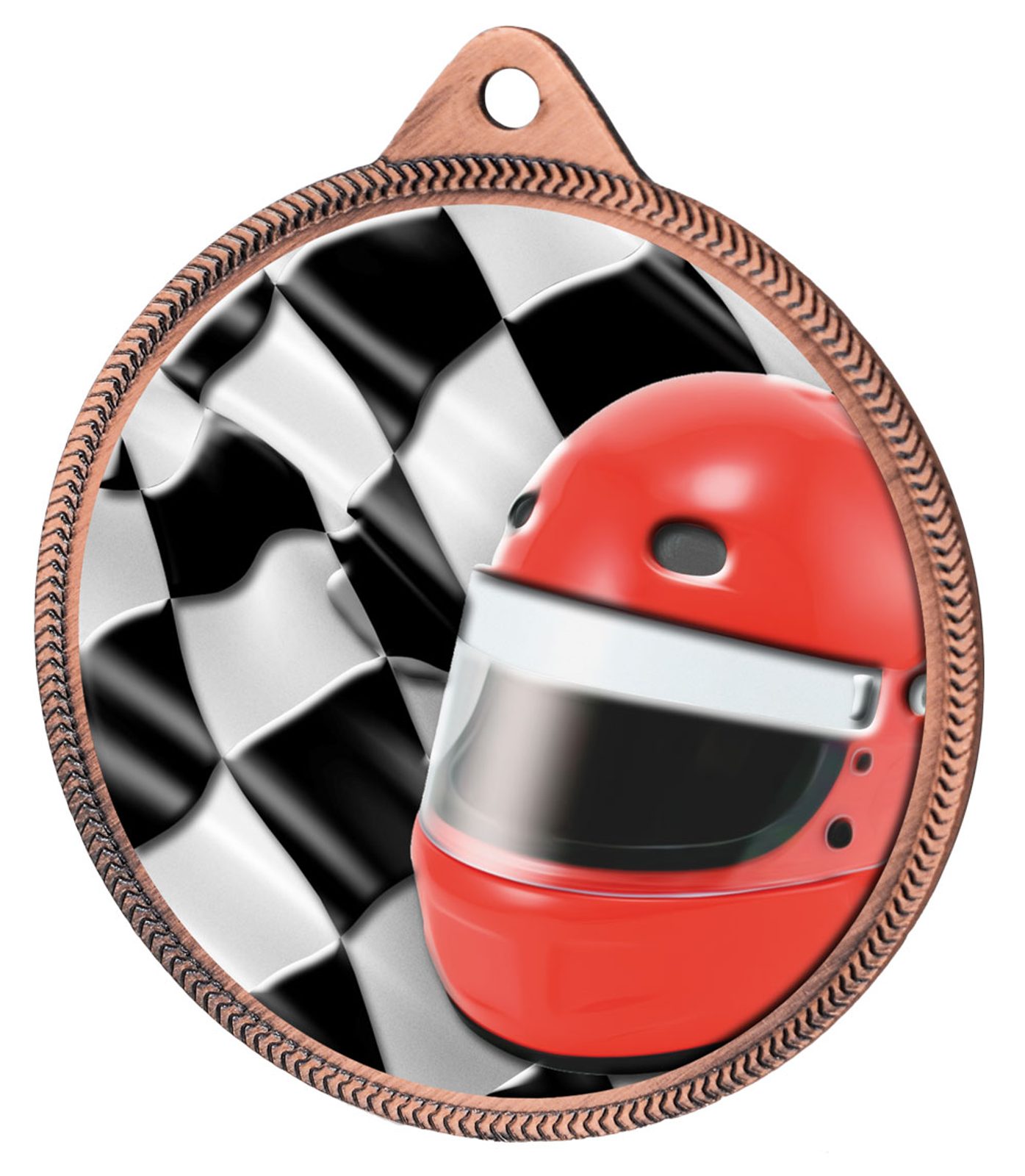 Motorsports Helmet and Flag Color Texture 3D Print Bronze Medal