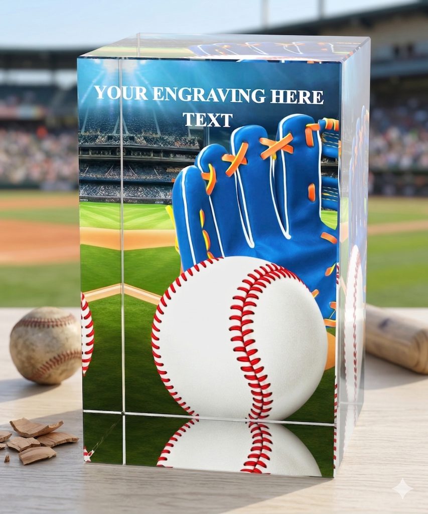 Elevate your victory with a stunning piece of modern sports memorabilia. This premium crystal cube features a high-definition, multi-dimensional Baseball graphic, capturing the intensity of the pitch. Designed with a unique "rear-print" technique, the image gains incredible depth and clarity, making it a standout centerpiece for any trophy case or office desk.
