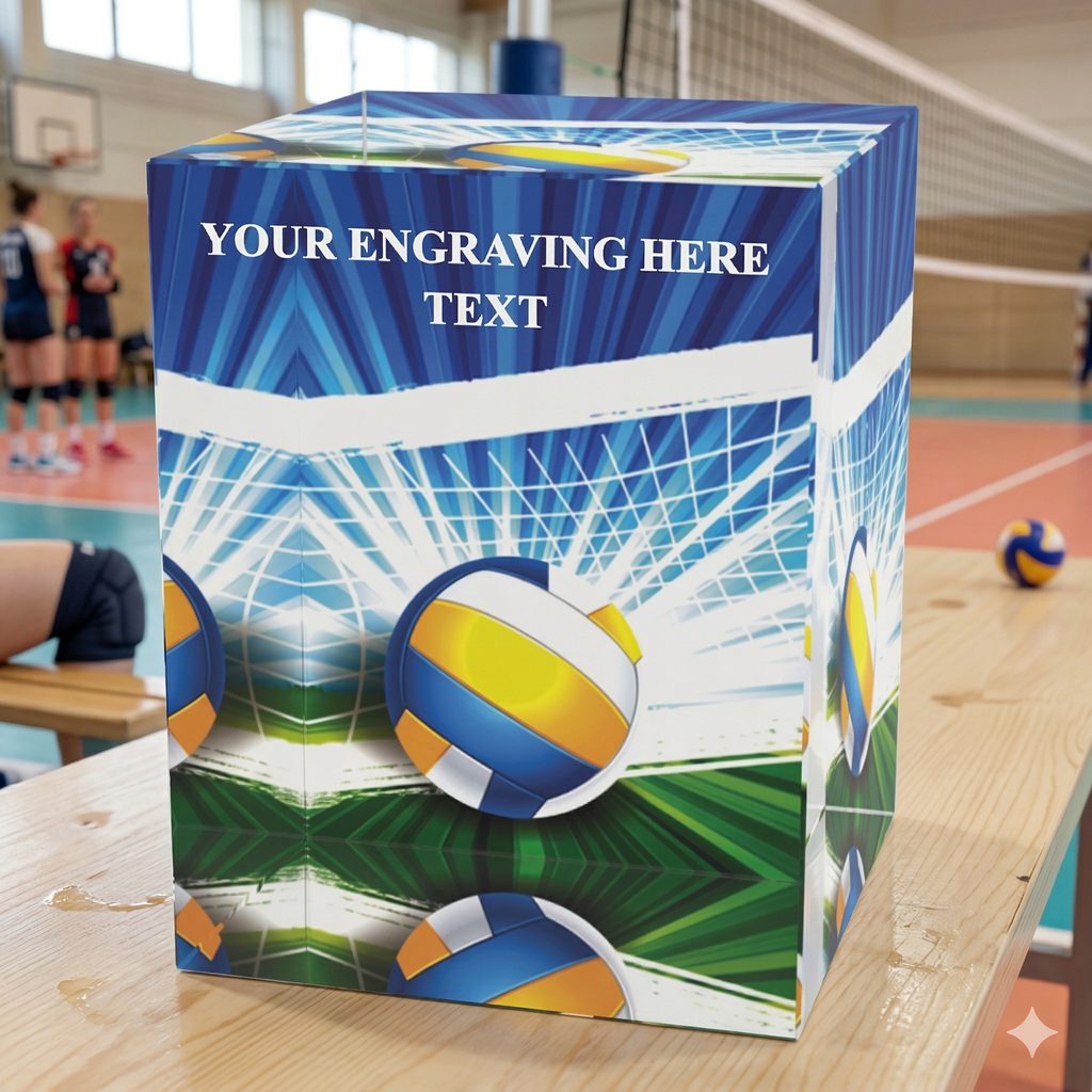 Large: 4 ¾" Cube – A commanding choice for championship trophies.