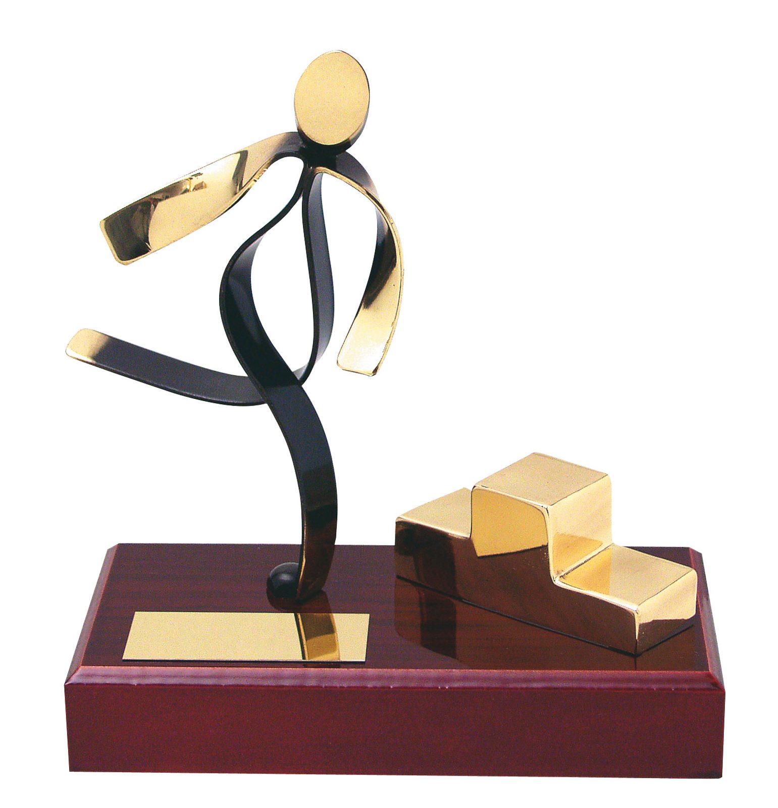 The Olympian Athletics Trophy is an exclusive handmade metal award. It is mounted onto a high quality polished wooden base. The award is part of an exclusive collection of awards that are handmade in Barcelona, Spain. Each trophy is hand crafted from high quality metals, including brass, copper, nickel, pewter and steel and are set upon either wooden or marble bases.
