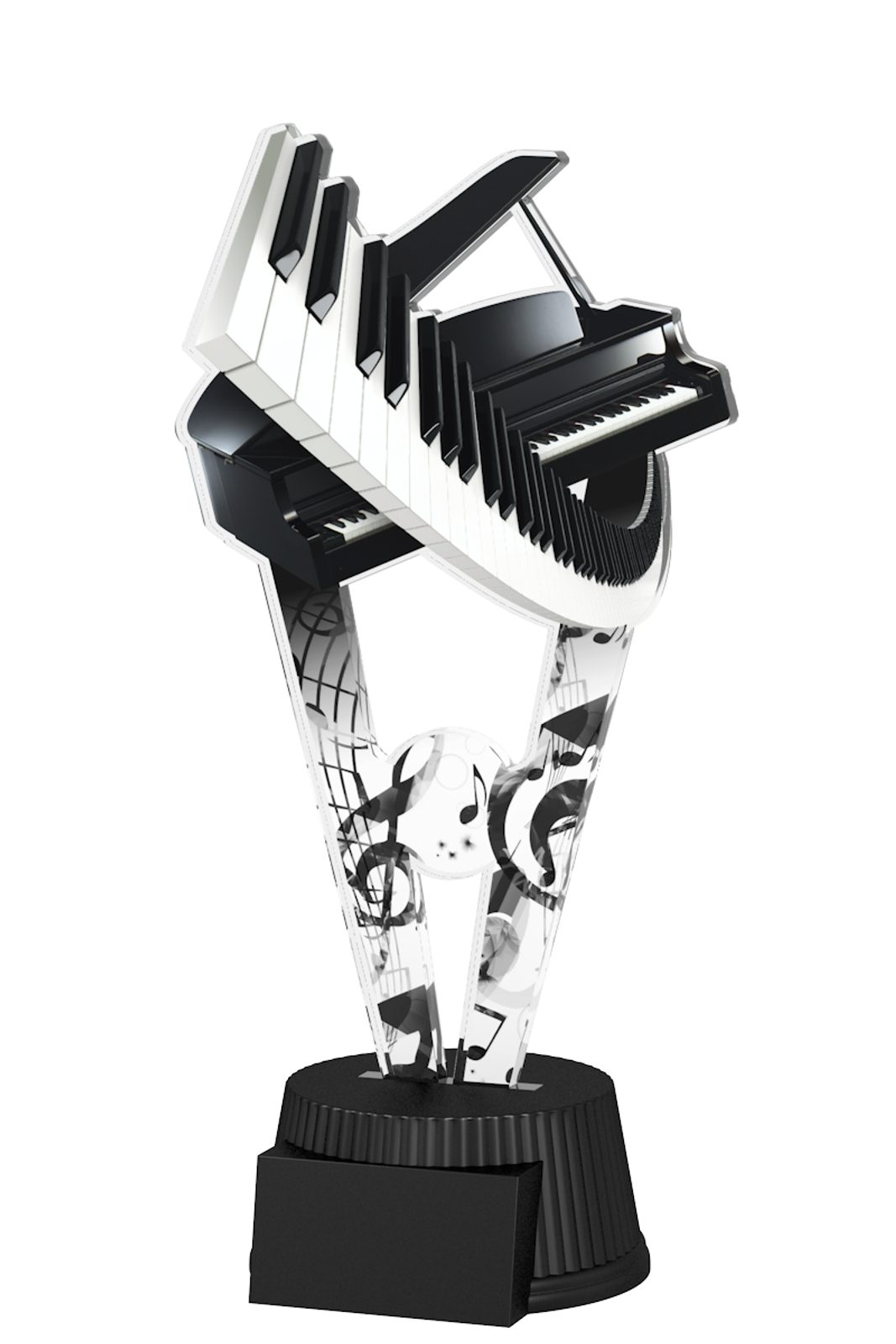 The Oxford Music Piano Trophy is a modern take on a classic trophy. Precision cut to shape, this award features a double sided full color print on 1/4" thick acrylic, all mounted onto a black heavyweight PVC base.