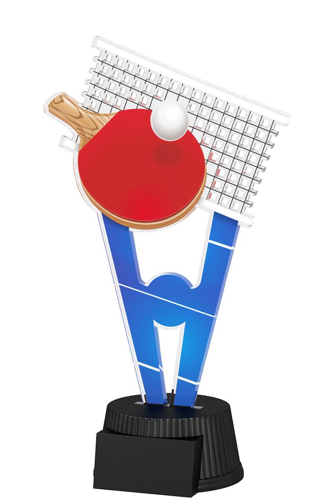 The Oxford Table Tennis Trophy is a modern take on a classic trophy. Precision cut to shape, this award features a double sided full color print on 1/4" thick acrylic, all mounted onto a black heavyweight PVC base.