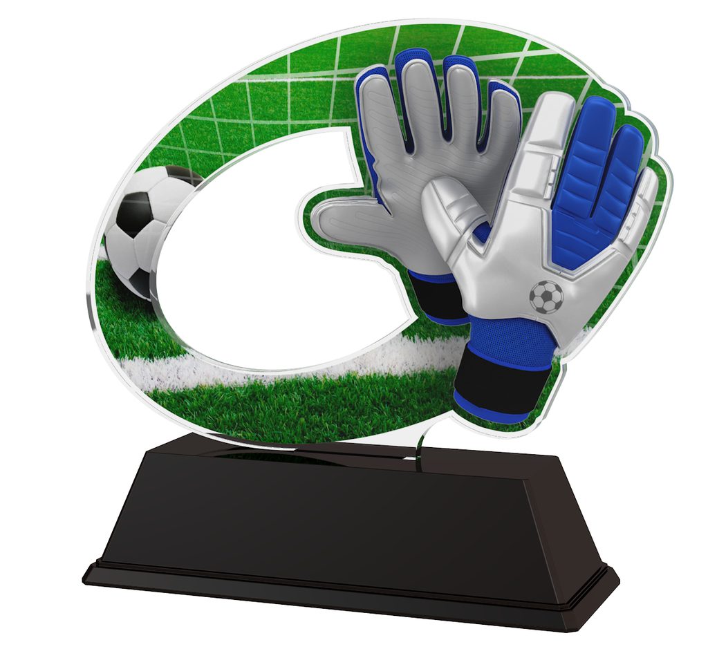 Cut to shape this trophy comes to life with a high quality full color print on the reverse side of the 5/32"  thick acrylic mounted on a black PVC base.