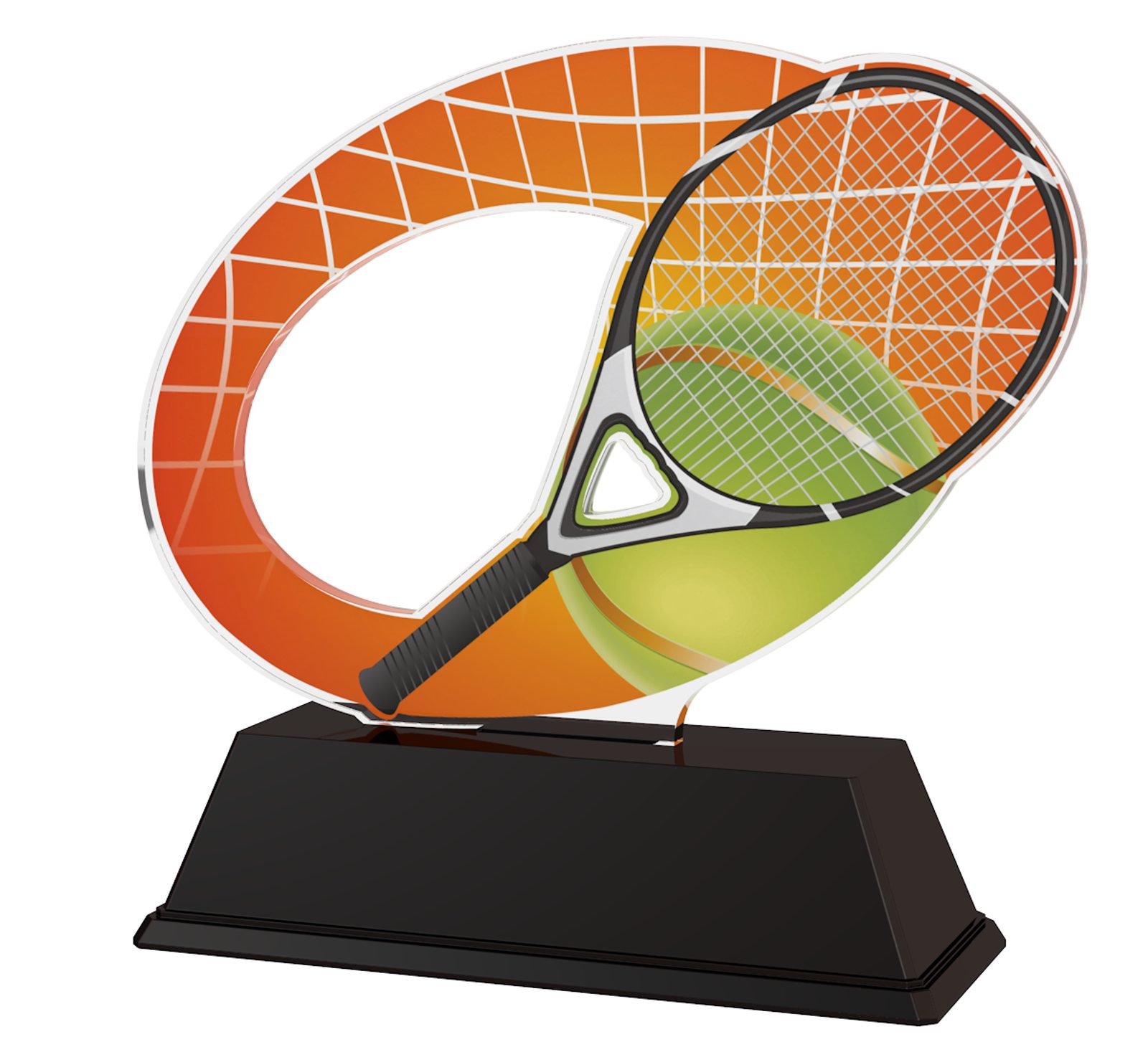 Cut to shape this trophy comes to life with a high quality full color print on the reverse side of the 5/32"  thick acrylic mounted on a black PVC base.