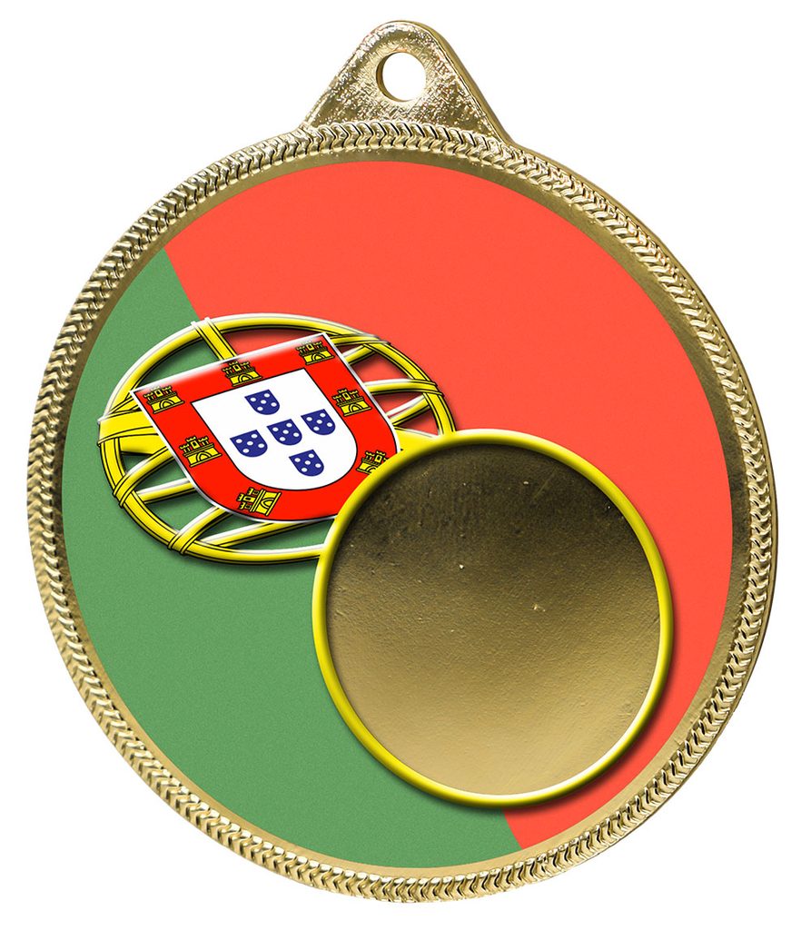 The Portugal Flag Logo Insert Gold Medal is exclusive to Trophy Monster. Give out a Portuguese medal to remember with this uniquely designed metal 2 1/8"medal. The medal has been printed using the latest 3D texture coating technology making the medal come alive with a vibrant raised full color print.