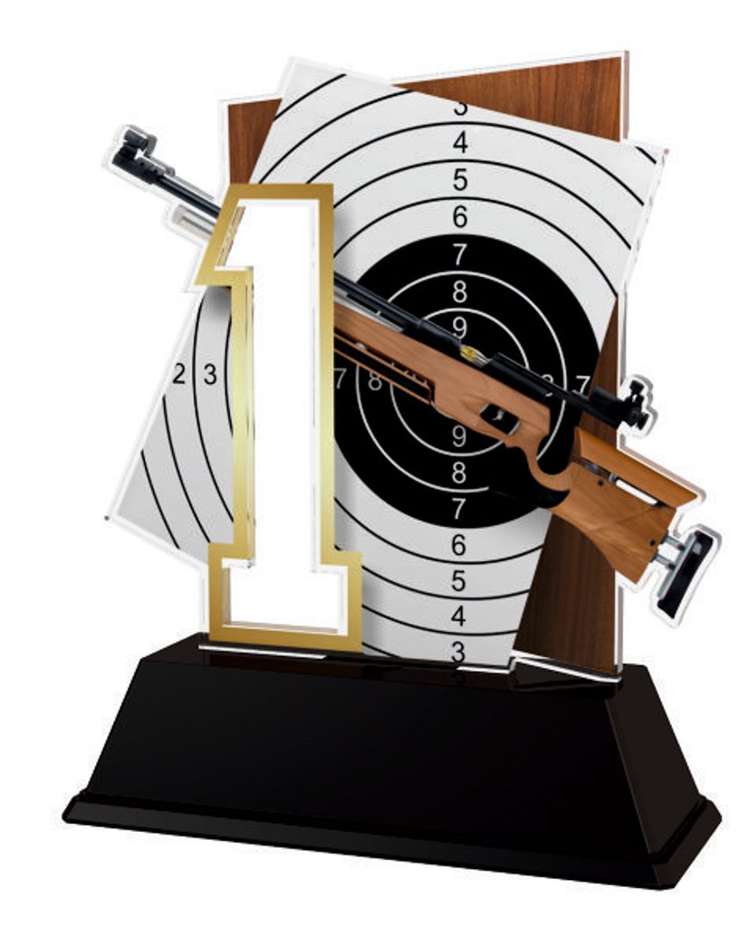 The Poznan Air Rifle Number Trophy is a modern take on a classic style award for 1st, 2nd, 3rd place. Cut to shape this trophy features a high quality full color print on the reverse side of the 1/8"  thick acrylic mounted on a black PVC base.