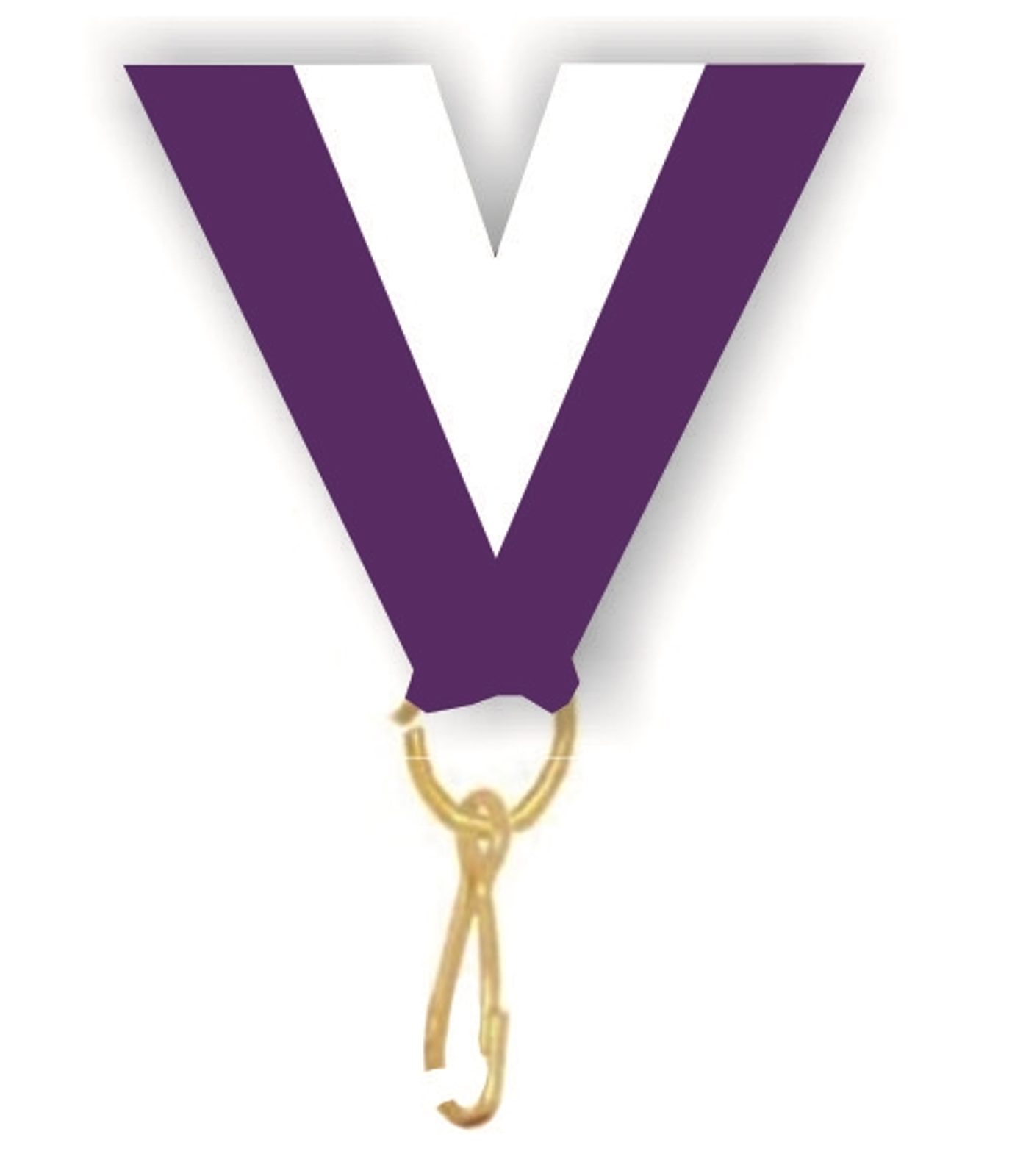 A two colour purple and white striped woven medal ribbon. All ribbons are finished with a ring and clip. The size is industry standard 22mm (wide) x 395mm (length) which will fit children and adults.