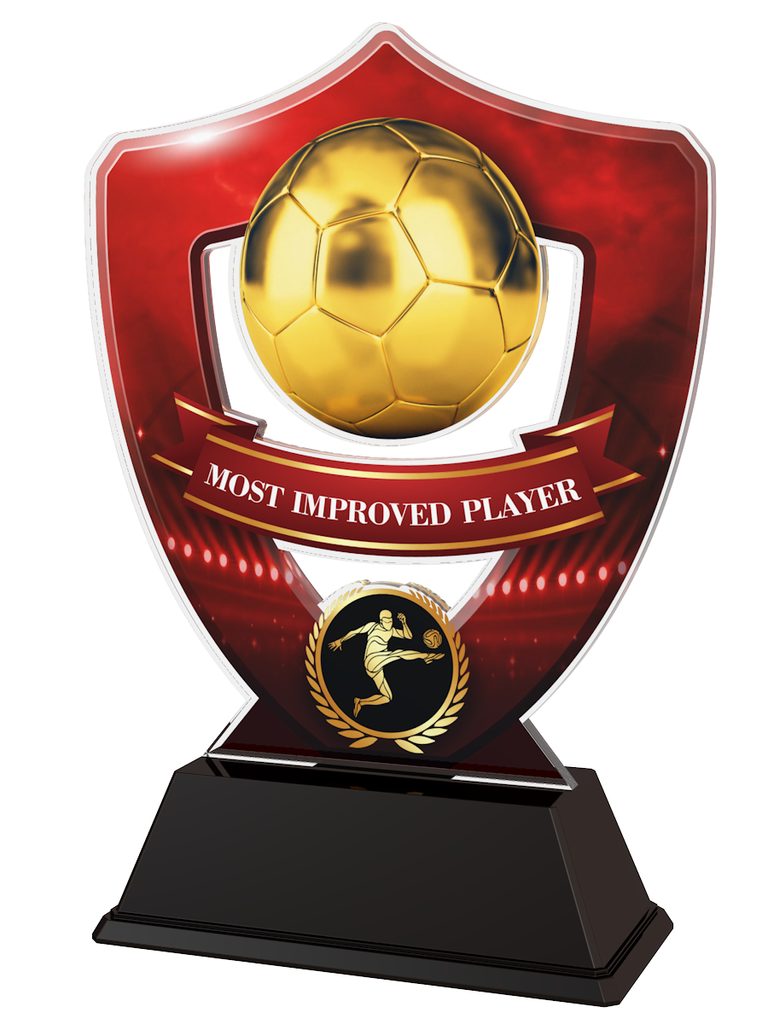 Red Most Improved Player Soccer Shield Trophy