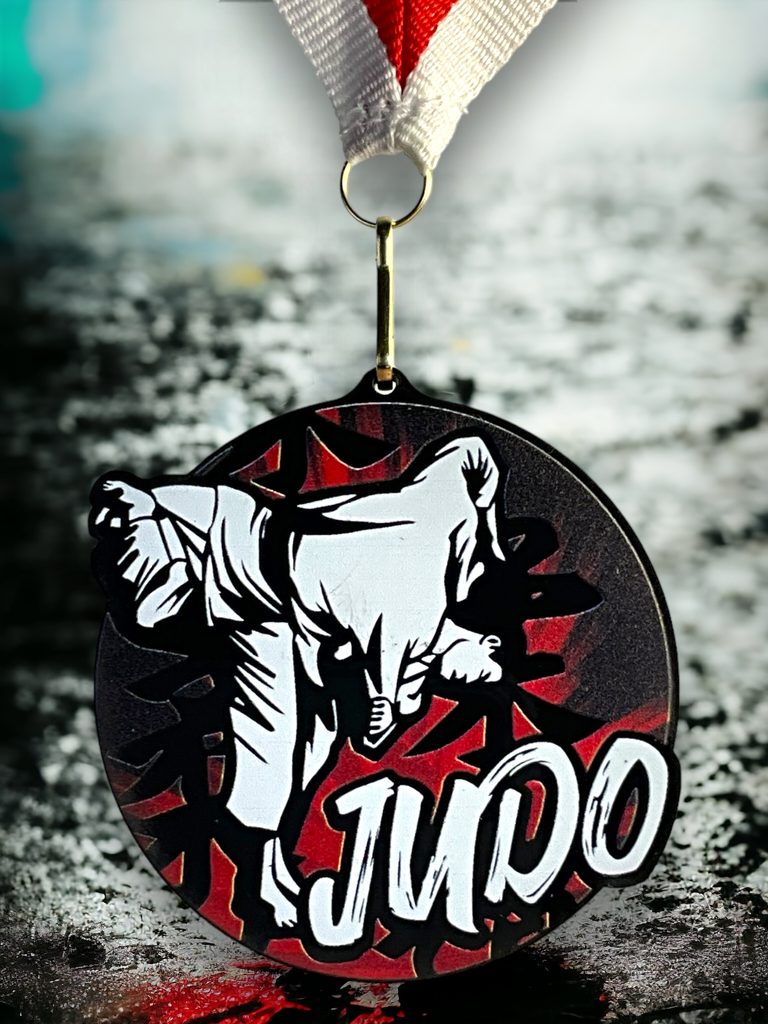 Introducing a special acrylic medal made of 1/8" thick black gloss acrylic and decorated with a high quality color print, making it a truly amazing product. Now available in full color, gold, silver or bronze, this exclusive creation is brought to you by Trophy Monster.