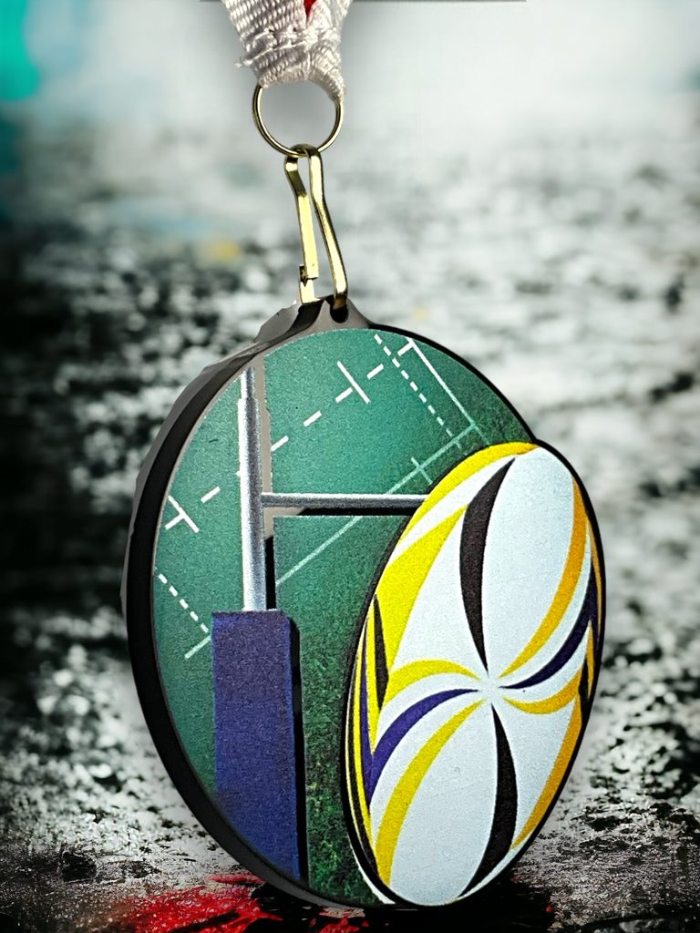 Rincon black acrylic Rugby medal