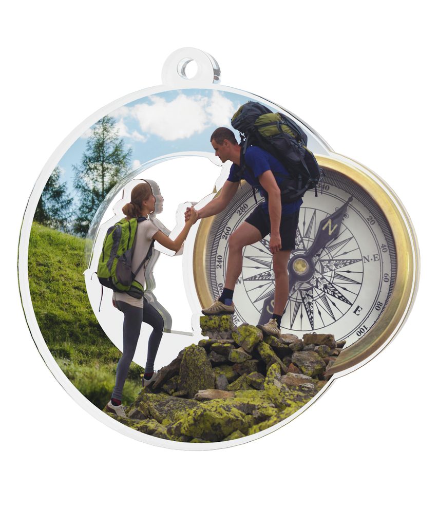 The Rio Hiking and Mountaineering Medal is made from 1/8" thick acrylic with a very high quality reverse full color print. Expertly cut out in the middle making for a unique style medal. Select form three sizes. The medal comes complete with a loop to accommodate a ribbon.