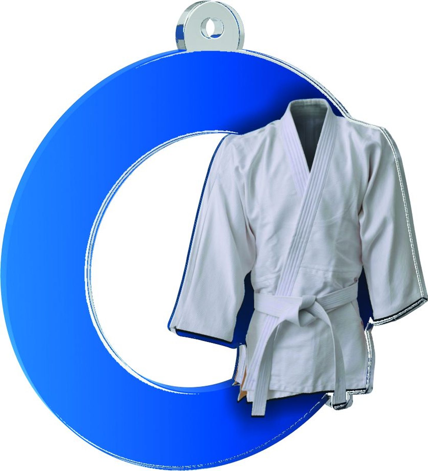 Rio Martial Arts Kimono Medal is made from 1/8" thick acrylic with a very high quality reverse full color print. Expertly cut out in the middle making for a unique style medal. Select form three sizes. The medal comes complete with a loop to accommodate a ribbon.