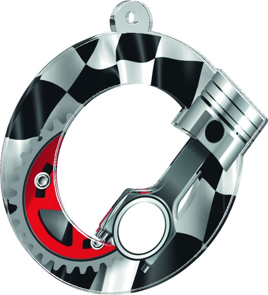 The Rio Motorsport Piston Medal is made from 1/8" thick acrylic with a very high quality reverse full color print. Expertly cut out in the middle making for a unique style medal. Select form three sizes. The medal comes complete with a loop to accommodate a ribbon.