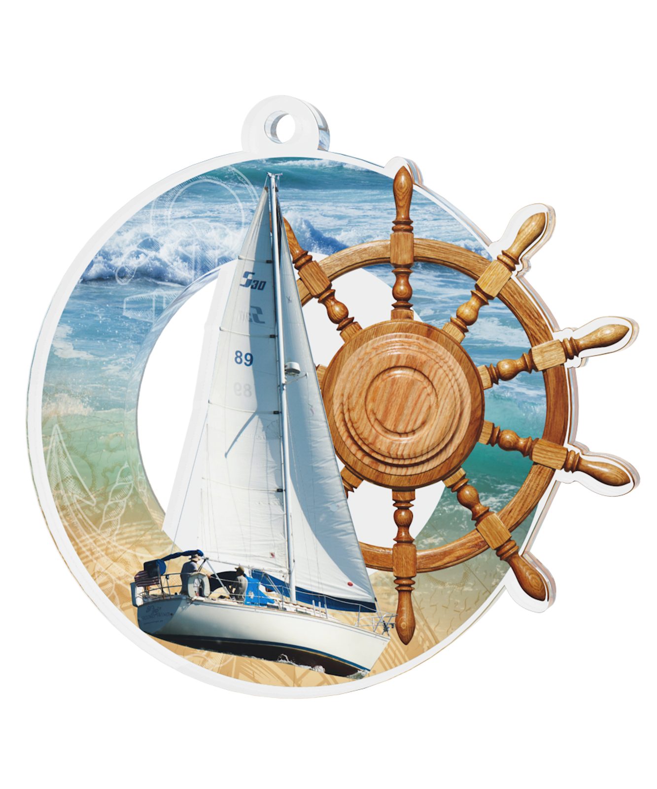 The Rio Sailing Medal is made from 1/8" thick acrylic with a very high quality reverse full color print. Expertly cut out in the middle making for a unique style medal. Select form three sizes. The medal comes complete with a loop to accommodate a ribbon.