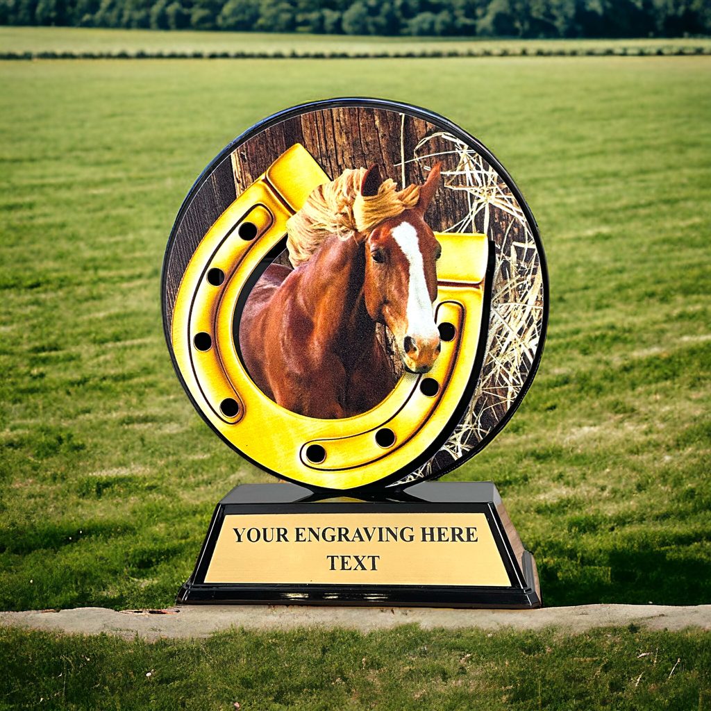 Pegasus Red and Blue Horseshoe Rosette Trophy