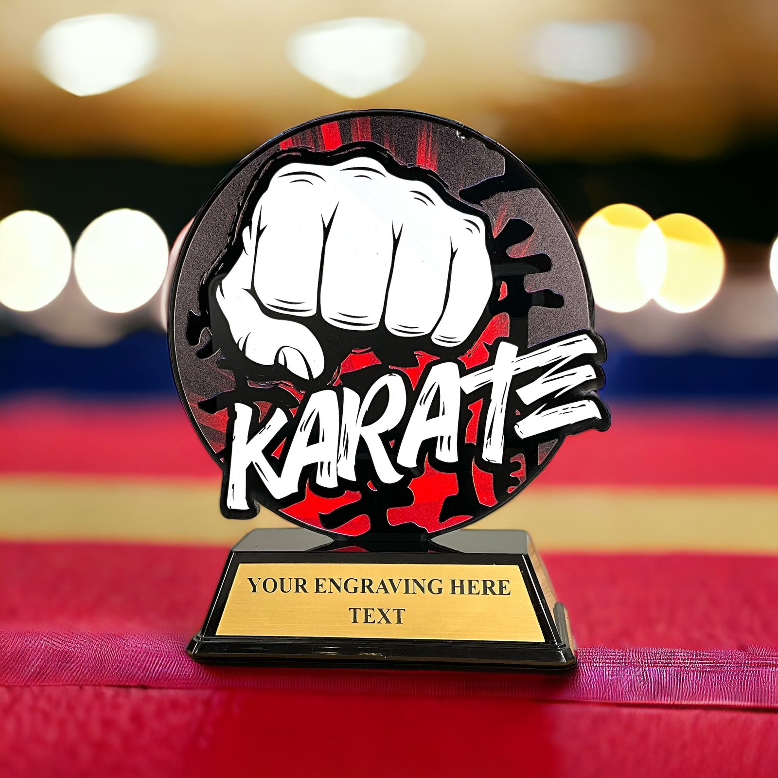 Acrylic trophy made of glossy black acrylic made from 5/32" thick high-grade acrylic with premium quality full color print. This is a dedicated trophy and is fully printed. Superior to copies using printed inserts. Available in five sizes to suit all budgets..