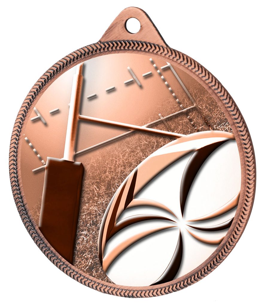 Rugby 3D Texture Print Antique Colour 2 1/8" Medal - Bronze