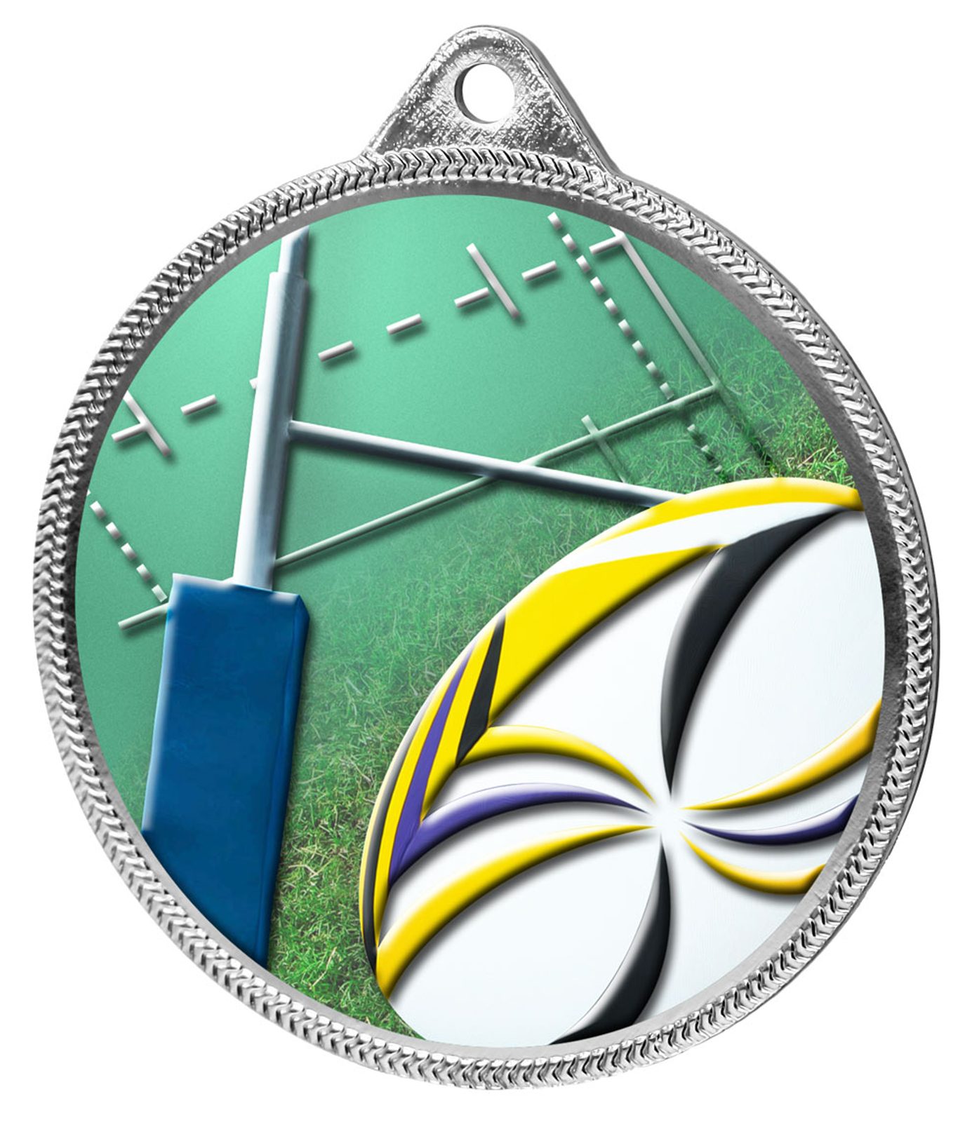 Rugby 3D Texture Print Full Color 2 1/8" Medal - Silver
