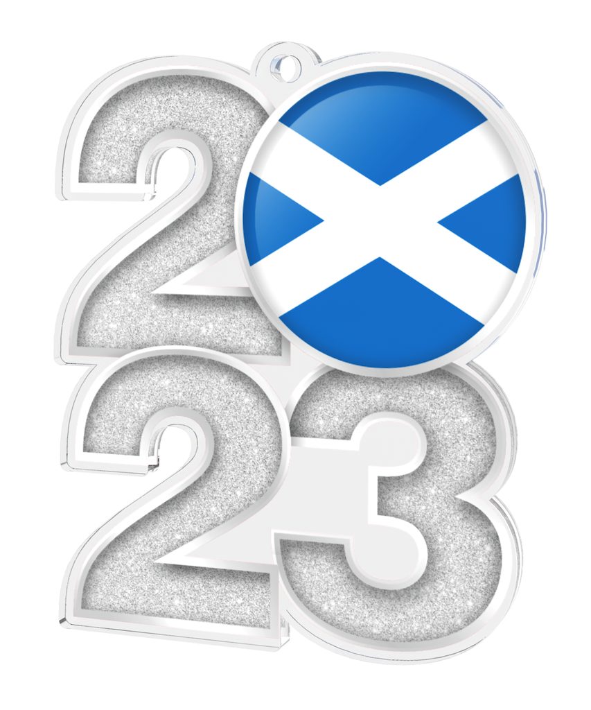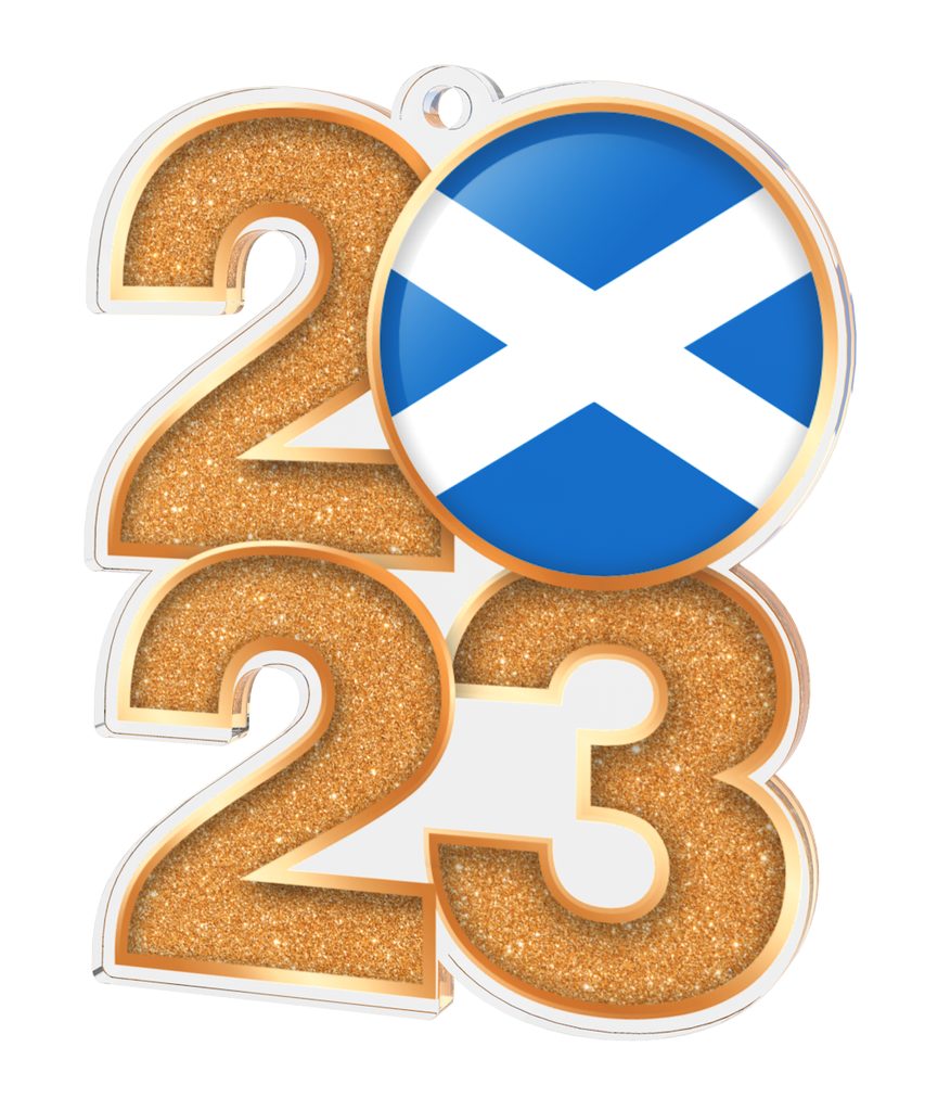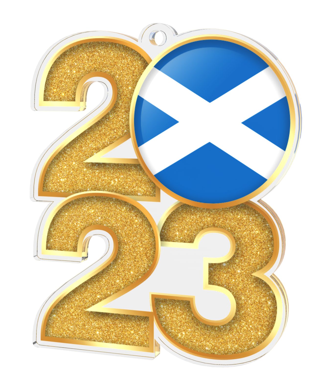 The Scotland Flag Acrylic 2023 Medal is part of a brand new exciting exclusive range available in a gold, silver or bronze finish. Made in a large size of 2 3/4" (h) x 2 1/2" (w).