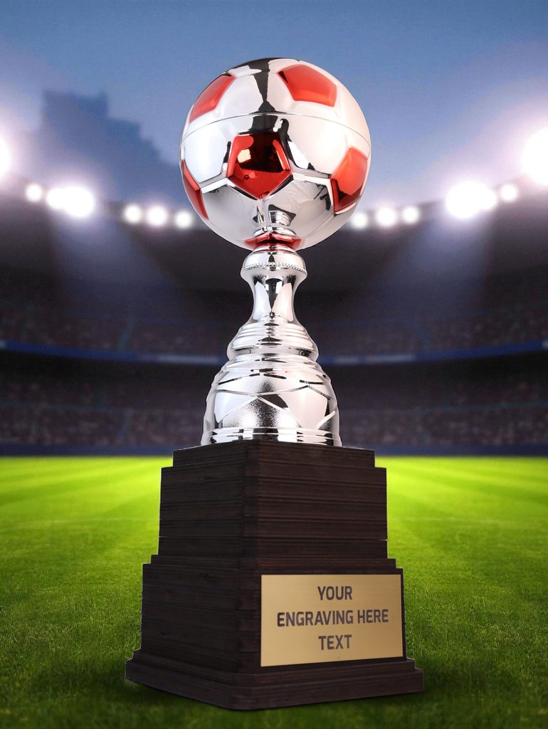 Introducing the magnificent Sealy Tower Soccer Trophy. This trophy is truly a colossus, available in three impressive sizes: 21½", 19", and 17½". Whether you choose the largest or the more compact versions, each will undoubtedly be the centerpiece of any presentation.
