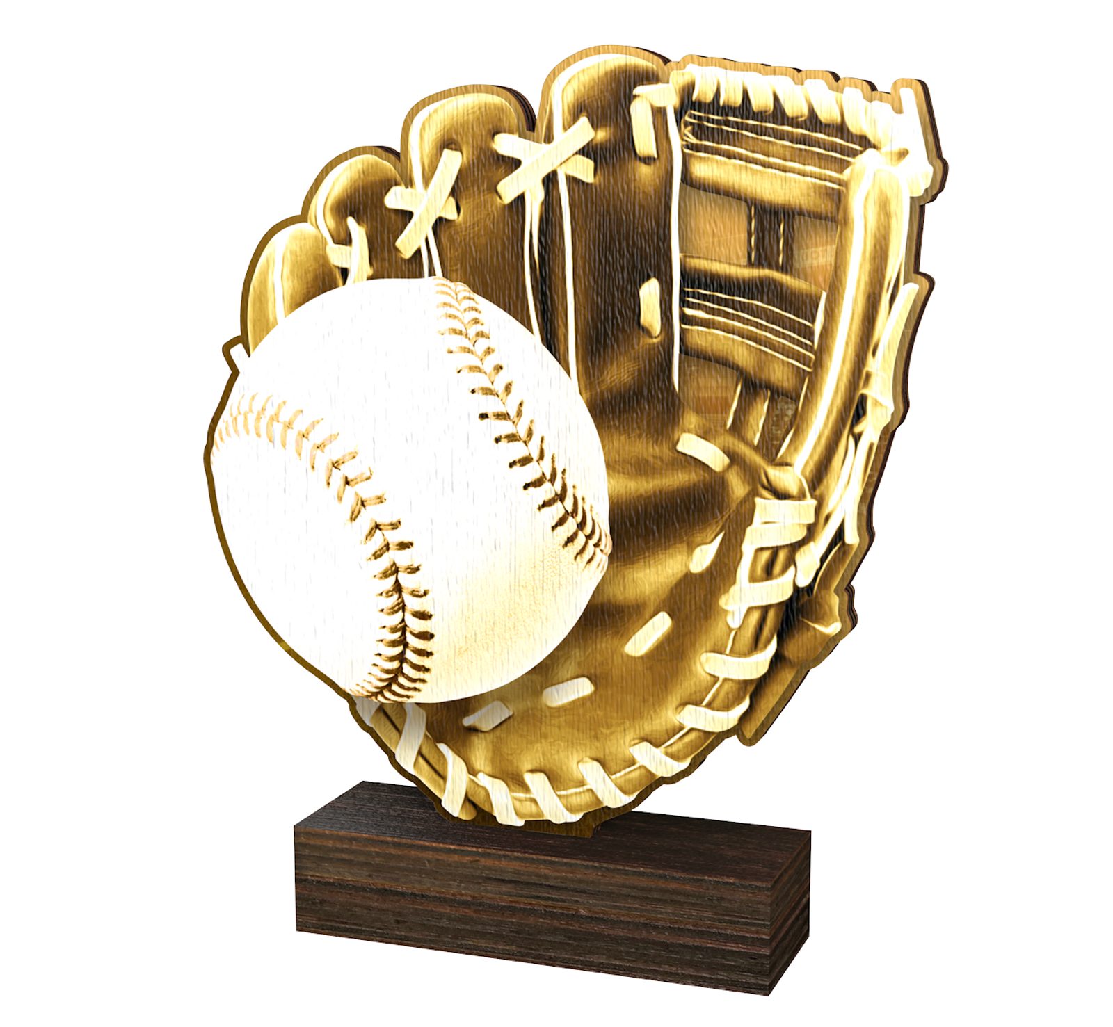 The Sierra Classic Baseball Wood Trophy is a brand new eco friendly award made from 0.3" thick natural birch plywood, mounted on a thick wooden rectangular base. A sustainable product that is part of a collection designed and manufactured in our own factory. Not only for the environmentally conscious, this trophy will be the centrepiece in any presentation.