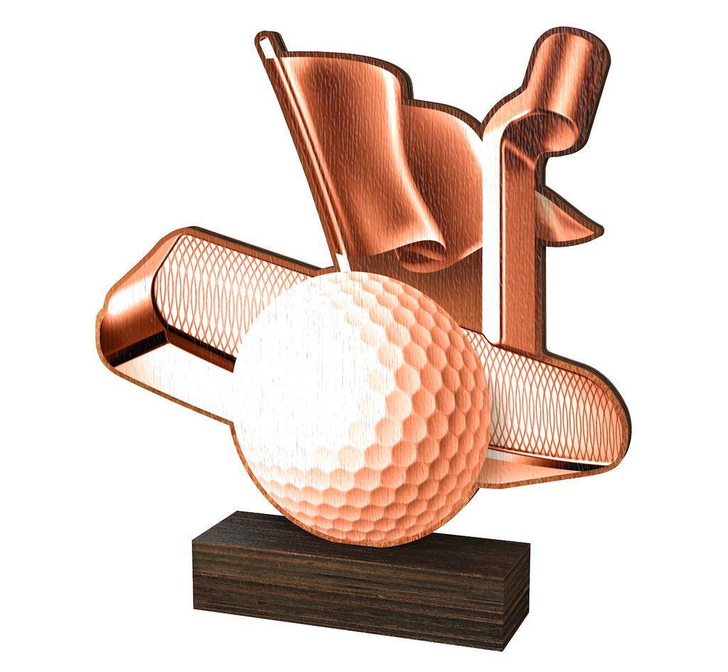 The Sierra Classic Golf Putter Wood Trophy is a brand new eco friendly award made from 0.3" thick natural birch plywood, mounted on a thick wooden rectangular base. A sustainable product that is part of a collection designed and manufactured in our own factory. Not only for the environmentally conscious, this trophy will be the centrepiece in any presentation.
