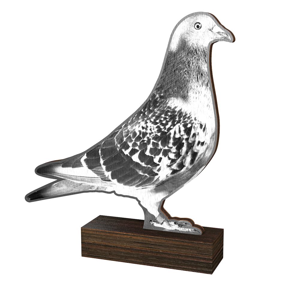 The Sierra Classic Pigeon Racing Wood Trophy is a brand new eco friendly award made from 0.3" thick natural birch plywood, mounted on a thick wooden rectangular base. A sustainable product that is part of a collection designed and manufactured in our own factory. Not only for the environmentally conscious, this trophy will be the centrepiece in any presentation.