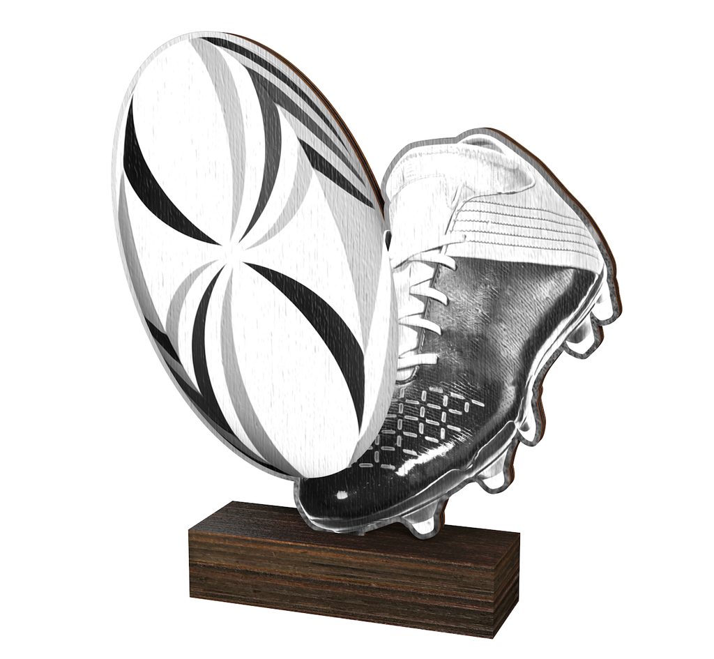The Sierra Classic Rugby Wood Trophy is a brand new eco friendly award made from 0.3" thick natural birch plywood, mounted on a thick wooden rectangular base. A sustainable product that is part of a collection designed and manufactured in our own factory. Not only for the environmentally conscious, this trophy will be the centrepiece in any presentation.