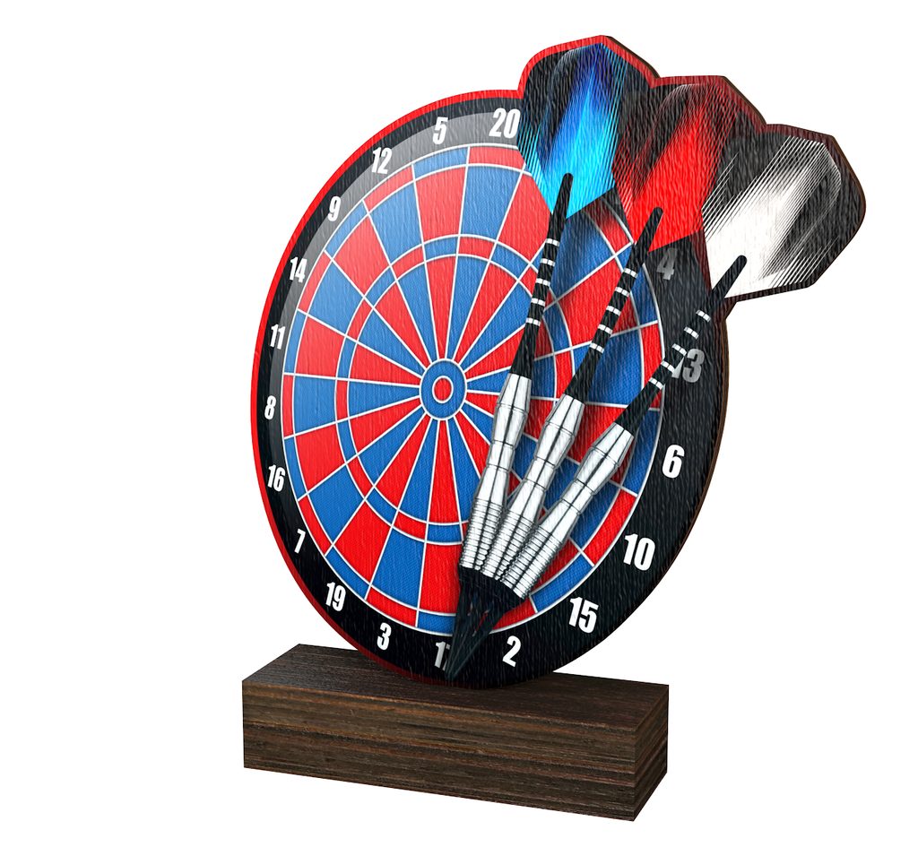 The Sierra Electronic Darts Wood Trophy is a brand new eco friendly award made from 0.3" thick natural birch plywood, mounted on a thick wooden rectangular base. A sustainable product that is part of a collection designed and manufactured in our own factory. Not only for the environmentally conscious, this trophy will be the centrepiece in any presentation.