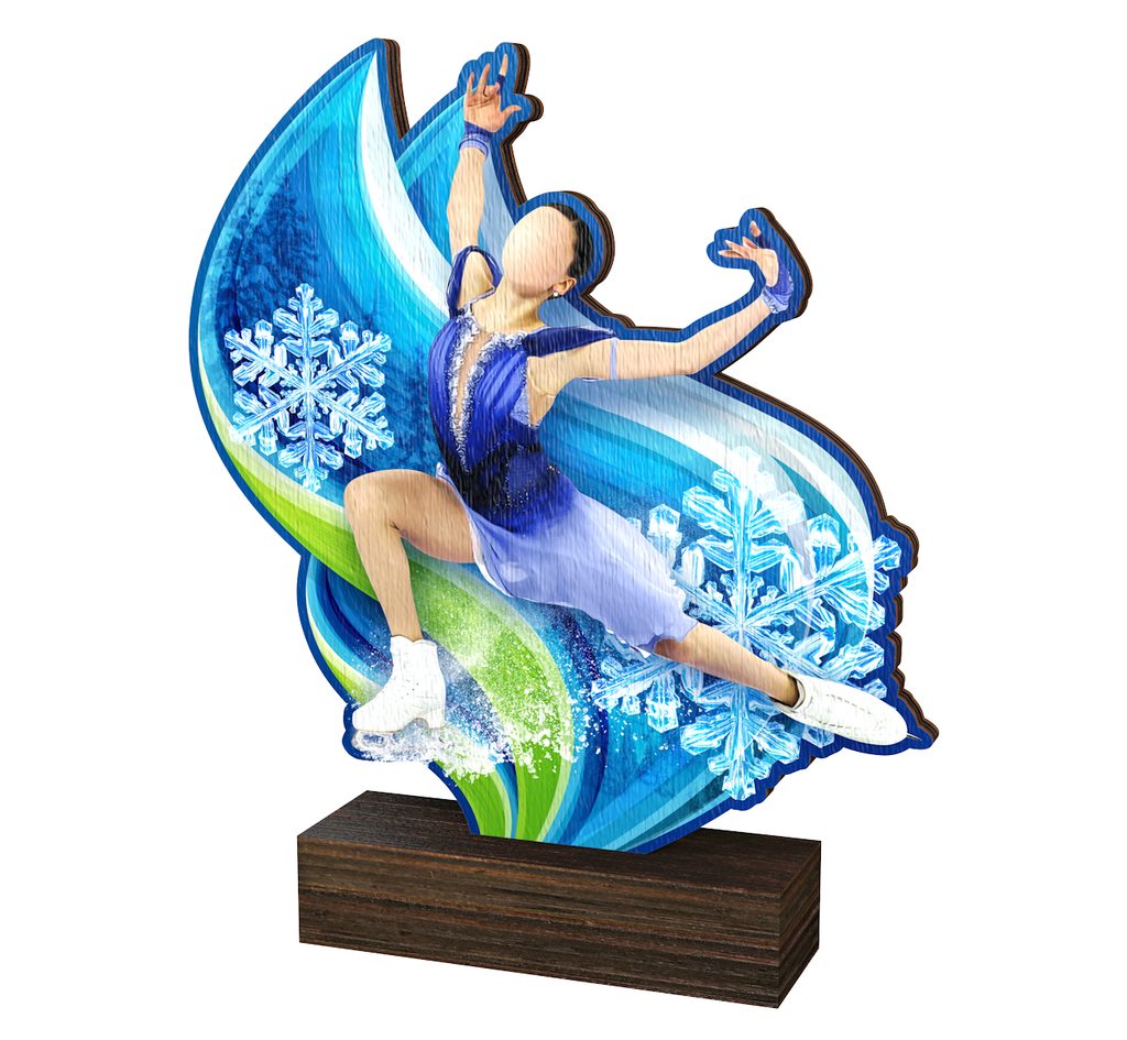 The Sierra Figure Skating Real Wood Trophy is a brand new eco friendly award made from 5/16" thick natural birch plywood, mounted on a thick wooden rectangular base. A sustainable product that is part of a collection designed and manufactured in our own factory. Not only for the environmentally conscious, this trophy will be the centrepiece in any presentation.