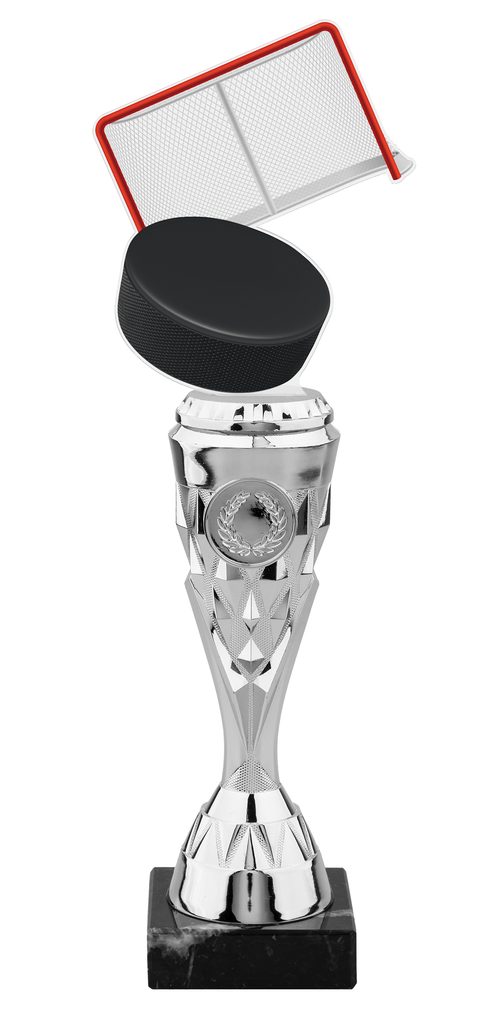 The Silver Hockey Puck Acrylic Top Trophy is the latest in contemporary design. Watch eyes light up when presenting this award, with the high quality full colour print on the reverse side of 4mm thick acrylic mounted on an attractive silver plastic column, which itself is mounted on a black marble base.
