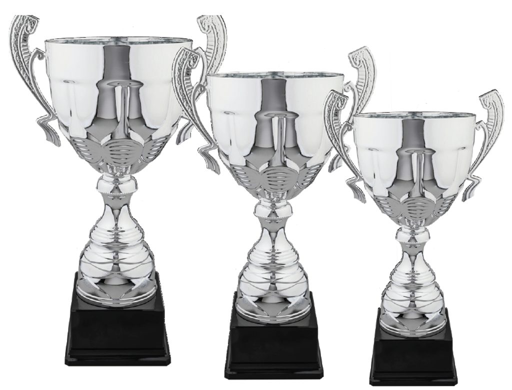 The Silver Luxury Large Cup is a luxury silver contemporary award. Consisting of a black weighted PVC base, with a silver plastic stem and a deep metal bowl. Comes in 3 large sizes 19.5",17", 16".