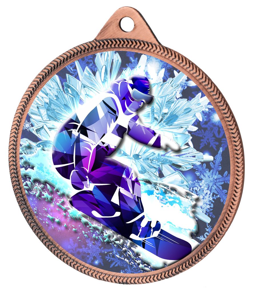 Snowboarding 3D Texture Print Full Color 2 1/8" Medal - Bronze
