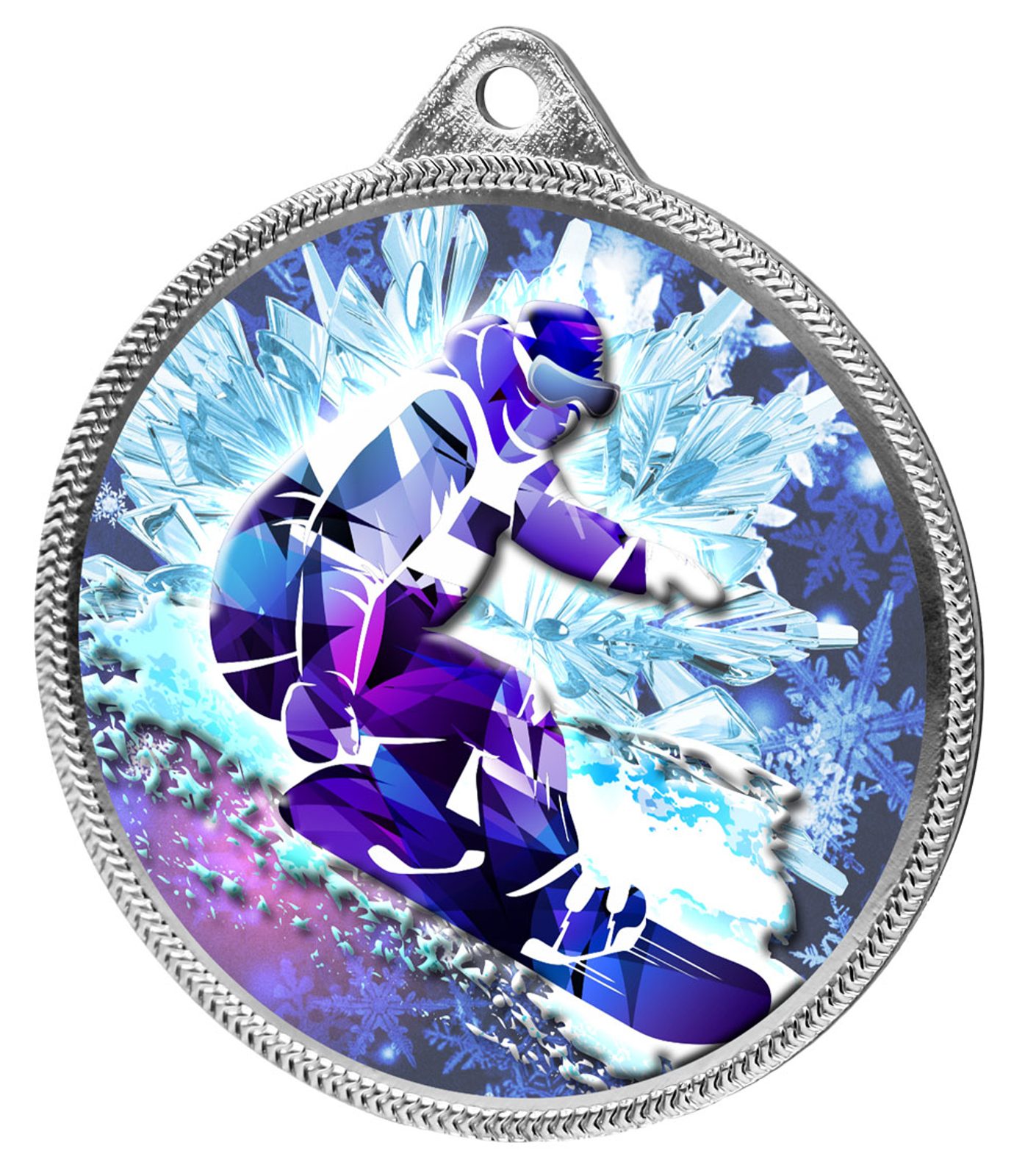 Snowboarding 3D Texture Print Full Color 2 1/8" Medal - Silver
