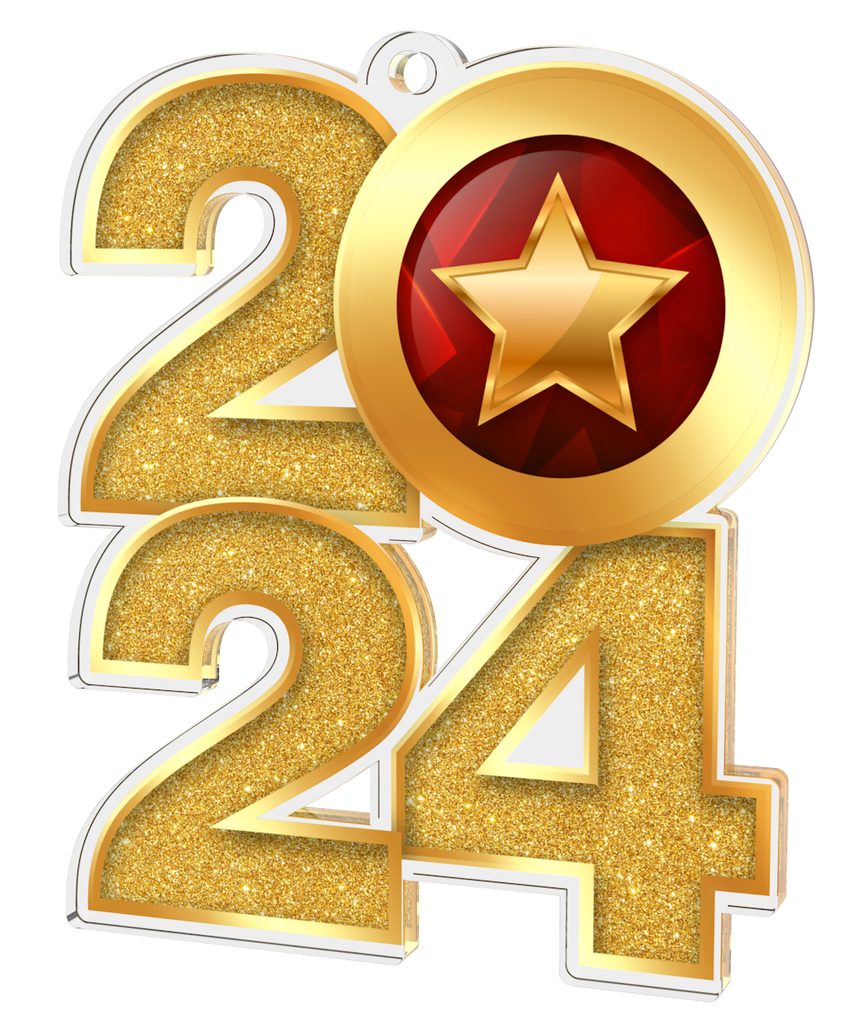 Acrylic Medal 2024 is part of a brand new exciting exclusive range available in a gold, silver or bronze finish. Made in a large size of size 2 3/4".