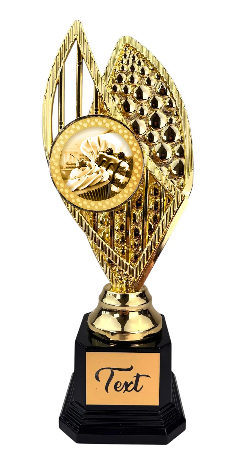 Introduce a stylish and affordable award with our premium plastic trophy, available in gold, silver, and bronze finishes. This eye-catching design features a modern, textured topper with a central insert area for your custom sport or logo.